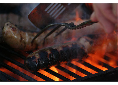جک هیوز عکس خود را در یک بعد ازظهر آفتابی درحیات خانه خود در بلفاست از کباب گردن سوسیس گرفته است.