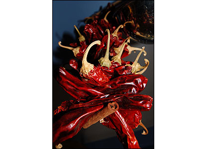 ملانی تاپینگ عکسی از چند فلفل قرمزخشک گرفته که به غذا تندی و حرارت می بخشد.