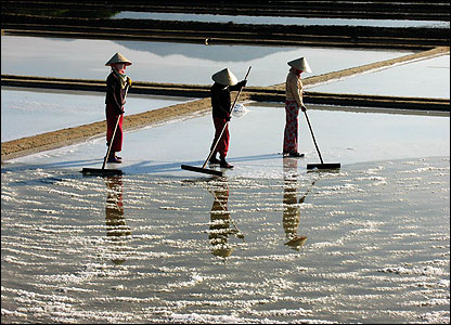 بینه دوونگ: عکسی از جمع آوری نمک در اثر تبخیر آب شور در دهکده ای در ویتنام