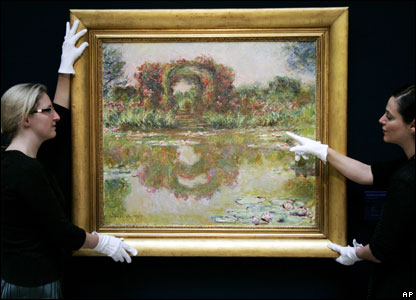 کمان گل های سرخ، ژیورنی از مجموعه 'نیلوفرهای آبی' مونه در حراج کریستی به معرض فروش گذاشته می شود. قیمت این اثر هنری میان 9 تا 12 میلیون پوند برآورد شده است.