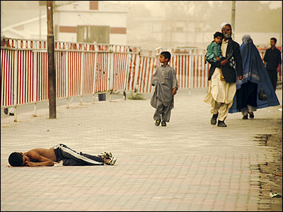 پسر گدا در پياده رو در کابل عکس از براتعلی باتور