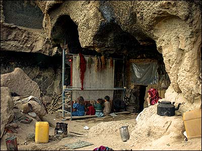کودکان در باميان در هنگام بافتن قالی. فقر خانواده های اين افراد را مجبور می کند که مکتب نروند و کار کنند. عکس از براتعلی باتور