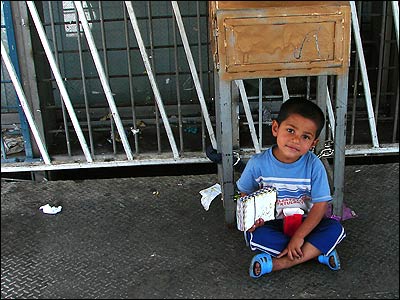 کودک فالنامه فروش کنار پل عابرپياده، ميدان انقلاب