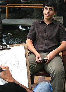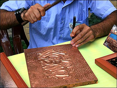 اين عکسها را مهران از تهران برای صفحه صدای شما فرستاده است. او می نويسد اين عکسها از بازارچه هنرهای دستی تهران تحت عنوان خیابان هنر تهران (خیابان شریعتی جنب پل سید خندان) در دوم مرداد ۱۳۸۶ گرفته شد است. اینگونه گالری ها برای آشنایی بیشتر مردم و بخصوص جوانان باهنرهای گوناگون و همچنین پرکردن اوقات فراغت در فصل تابستان از سوی شهرداری تهران درحاشیه پارکها و خیابانهای اصلی شهر برپا میشود.