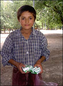 عزيزالله چهارده ساله: من به مکتب می روم چون می خواهم در آينده زندگی بهتری از حالا داشته باشم. بعد از مکتب ساجق (آدامس) می فروشم. حسوديم می شود وقتی می بينم بچه ها با پدر و مادرانشان در شهر مشغول گشت وگذار هستند.