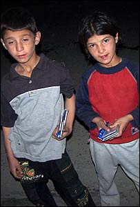 برخی از بچه ها مثل اين خواهر و برادر تا دير وقت در خيابان ها مشغول کاراند تا پولی را که بدست می آورند به خانواده هایشان بدهند. |