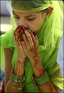 دختران پاکستانی با دستان حنا بسته در روز اول عيد