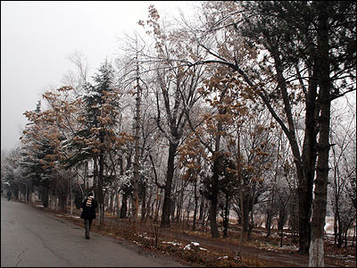 درختان رنگارنگ و برف در پوهنتون (دانشگاه) کابل