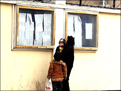 خانمی با اطفالش در نزدیک یکی از بانکهای کابل: "امید که اینبار بخت من باز شود"