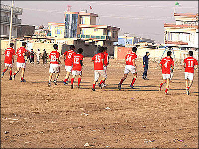 یکی از تیم های فوتبال کابل در حال تمرین، اکثر میدان ها و پارک ها خاکی بوده و نقاط مسکونی شهر قرار دارد