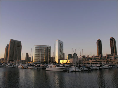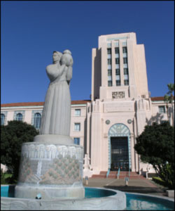 تندیس نگاهبان آب در کنار ساختمانی اداری در سن دیه گوی کالیفرنیا