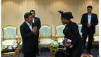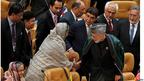 • دیدار حامد کرزی، رئیس جمهور افغانستان با هیات بنگلادش. نخست وزیر بنگلادش در گوشه سمت چپ تصویر دیده می شود.