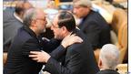 • حضور علی اکبر صالحی، وزیر خارجه ایران در میان هیات سوری حاضر در اجلاس. نفر سمت راست رو به تصویر نخست وزیر و سمت چپ سفیر سوریه در تهران است. ولید معلم وزیر خارجه سوریه هم در تصویر دیده می شود.