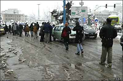 در پی بارش برف سنگين که از روز يکشنبه 18بهمن آغاز شده، اکثر مراکز آموزشی تهران و برخی از شهرهای ايران تعطيل شده است. در همين حال رفت و آمد در تهران مختل شده و ميزان تصادفات خيابانی در اين شهر به شدت افزايش يافته است. يک کارشناس آب و هوا به خبرگزاری دانشجويان ايران، ايسنا، گفته است بارش ۳۳ سانتی متر برف در تهران در ۳۴ سال گذشته بی سابقه بوده است. شهرداری تهران نيز از مردم تهران خواسته است که خود درختانی را که زير بار برف قرار دارند بتکانند، تا مانع شکسته شدن شاخه ها زير فشار برف شوند.
