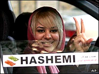 ستادهای تبليغاتی اکبر هاشمی رفسنجانی در اين دوره از انتخابات، برچسب های تبليغاتی به زبان انگليسی منتشر کرده و در سطح گسترده ای توزيع کرده اند.