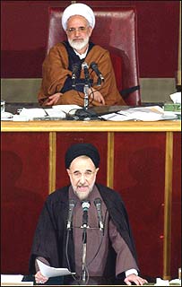 در سال ۱۳۸۳، پيشروی مخالفان خاتمی تا آنجا ادامه يافت که رييس قوه مجريه ترجيح داد لوايح دوگانه "اختيارات رياست جمهوری" را با اعتراض و برای پرهيز از تنش بيشتر، از مجلسی که اکثريت آن در اختيار مخالفان اصلاحات بود، بازپس بگيرد. در انتخابات رياست جمهوری نهم، بار ديگر شکايات مربوط به تخلفات انتخاباتی به جايی نرسيد. مهدی کروبی، همراه هميشگی خاتمی در سال های اخير، دولت و وزارت کشور را به باد انتقاد گرفت و تندترين سخنان را در تقبيح برگزاری انتخابات مجلس هفتم و رياست جمهوری نهم نثار سيد محمد خاتمی کرد. در مجموع، دور دوم رياست محمد خاتمی بر قوه مجريه انتقادهای بسياری را بر او و مجمموعه اصلاح طلبان وارد ساخت. در بعد اقتصاد، آرای گسترده مناطق محروم به شعارهای عدالت اجتماعی احمدی نژاد – و به ويژه به وعده ۵۰ هزار تومانی کروبی – وضعيت معيشتی مردم ايران را به پرسشی جدی برای ناظران سياسی بدل کرده است. با اين حال بسياری از تحليلگران اقتصادی همچنان از آثار دراز مدت و کلان سياست های اقتصادی خاتمی دفاع کرده و به او نمره قبولی می دهند. در عرصه سياست خارجی، در دو سال پايانی رياست جمهوری خاتمی، بحران هسته ای موقعيت رو به تثبيت ايران در عرصه جهانی را بار ديگر متزلزل کرد. ماجرای " مرگ مشکوک" زهرا کاظمی، پرونده حقوق بشر ايران و وضعيت بحرانی اکبر گنجی تلاش های خاتمی را برای تغيير نگاه جهانی به ايران کم اثر کرده است. با اين همه بسياری از ناظران، سياست خارجی محمد خاتمی را موفق ترين بخش عملکرد هشت ساله اش می دانند. از سوی ديگر، شکی نيست که سهم بزرگی از شکست های پياپی اصلاح طلبان در سه سال اخير را نيز – به عنوان "رهبر اصلاحات" – بايد به پای محمد خاتمی نوشت. او بارها، در رويارويی های سرنوشت ساز، انتظارات مردم را بی پاسخ گذاشت تا هر بار پس از آن، بخشی از مردم نيز ندای اصلاح طلبان را بی پاسخ بگذارند. سيد محمد خاتمی با همه نقدهايی که از او می شود، به زعم بسياری، همچنان محبوب ترين شخصيت سياسی ايران است. او با نگاه اخلاقی به سياست، و با پذيرش و بيان ضرورت نقد در جامعه، مناسبات ميان مردم و قدرت را در ايران دگرگون کرد. روز سه شنبه يازدهم مرداد، دوران رياست جمهوری آقای خاتمی به پايان می رسد. او در واپسين ماه های رياست جمهوری اش در جمع دانشجويان در دانشگاه تهران مورد شديدترين انتقادها قرار گرفت و سرانجام به خشم آمد. در پاسخ به دانشجويی که با لحنی تند از او سراغ وعده های عمل نشده اش را می گرفت، خاتمی به خود پرسش کننده اشاره کرد و گفت: " من قول داده بودم که شما روبروی رييس جمهوری خود بايستيد و از او انتقاد کنيد. به اين قول خود عمل کردم." |