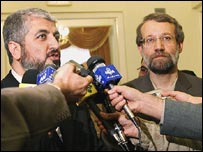 در عين حال، به گزارش خبرگزاری جمهوری اسلامی، ايرنا، علی لاريجانی دبير شورايعالي امنيت ملي ايران در ديدار با خالد مشعل گفته است جنبش حماس با روش دموكراتيك بدنبال استيفای حقوق ملت فلسطين است.