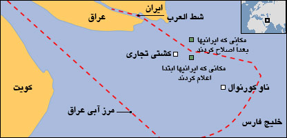 تلويزيون ايران دستگاههای کمک ناوبری نظاميان بازداشت شده بريتانيايی را نمايش داده که نشان می دهد نقطه ای که دو قايق حامل آنها به توقيف افراد سپاه پاسداران ايران درآمده، 450 متر داخل آبهای ايران قرار داشته اما نماينده بريتانيا در سازمان ملل می گويد ايرانيها اين دستگاههای کمک ناوبری را دستکاری کرده اند تا نقطه دلخواه خود را نمايش دهند. سرهنگ ستاره، فرمانده پایگاه مرزبانی دریایی اروند که ملوانان و تفنگداران دريايی بريتانيايی در حوزه استحفاظی او به توقيف نفرات سپاه پاسداران درآمده اند با ظاهر شدن در تلويزيون ايران، دستگاههای کمک ناوبری ضبط شده از قايق نظاميان بريتانيايی را نشان داده و گفته است: "بازخوانی اطلاعات موجود در این دستگاه نشان می دهد نظامیان انگلیسی قبلاً نیز به پنج نقطه آبهای سرزمینی ایران تعرض کرده اند که در نهایت در روز سوم فروردین امسال برابر با ۲۳ مارس ۲۰۰۷ به دست یگانهای گشتی ایران در منطقه توقیف شدند". علی لاریجانی دبیر شورای عالی امنیت ملی ايران نيز به واحد مرکزی خبر گفته مقامات سفارت بريتانيا در ایران قبلاً تعهد و تضمین داده بودند که نظامیان آنها به آبهای سرزمینی ایران تعرض نکنند اما دولت بريتانيا این "تعهد" را نادیده گرفته و بر اين اساس بوده که مرزداران ایرانی نظامیان بريتانيايی را بازداشت کردند. در مقابل، امير جونز پری، نماينده بريتانيا در سازمان ملل متحد به خبرنگاران گفته که ايرانيها ابتدا نقطه ديگری را در مورد محل توقيف ملوانان بريتانيايی نشان داده بودند که در آبهای عراق قرار می گرفت اما سپس آن نقطه را تغيير دادند و طوری نشان دادند که در آبهای ايران قرار گيرد. وی افزود که تلاش می کند شورای امنيت سازمان ملل را وادارد تا با صدور اطلاعيه ای از موضع بريتانيا در مورد غيرقانونی بودن بازداشت ملوانان اين کشور و لزوم آزادی آنان حمايت کند. اما ساعاتی پيش از اظهارات نماينده بريتانيا در سازمان ملل متحد، وزارت امور خارجه ایران یادداشتی برای سفارت بریتانیا در تهران فرستاد و تضمين خواست که نظاميان بريتانيايی ديگر به آبهای سرزمينی ايران تعرض نکنند. در یادداشت وزارت خارجه ایران خطاب به سفير بريتانيا آمده که نظامیان بريتانيايی پيش از اين نيز يک بار به آبهای سرزمینی ایران "تعرض" کرده و حتی یک بار نیز به صورت کتبی تعهد داده بودند که چنین اقدامی تکرار نشود. اشاره وزارت امورخارجه ايران در اين يادداشت به مورد مشابهی است که در زمان رياست جمهوری محمد خاتمی رخ داد و طی آن چهار ملوان بريتانيايی پس از آنکه سه روز در بازداشت ايران به سر بردند بر صفحه تلويزيون ظاهر شدند و از ورود غيرقانونی به آبهای ايران عذرخواهی کردند. اين بار نيز، يکی از ملوانان بازداشت شده بريتانيايی بر صفحه تلويزيون عربی العالم که از ايران پخش می شد ظاهر شده و اعلام کرده که در آبهای ايران بازداشت شده است. ملوانان و تفنگداران دريايی بريتانيايی بامداد جمعه گذشته (23 مارس) پس از بازرسی یک کشتی تجاری هندی توسط سپاه پاسداران ايران بازداشت و همراه دو قایق خود به داخل این کشور انتقال داده شدند.