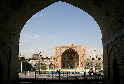 فضای ورودی مسجد امام (مسجد شاه سابق) که بر خیابان 15 خرداد، ضلع شمالی بازار، قرار دارد.