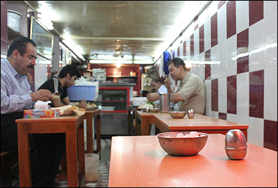 انواع رستوران ها و کافه های کوچک و بزرگ در محدوده بازار قرار دارند که ناهار و صبحانه سرو می کنند. اینجا قهوه خانه حاج اکبر است در اولین ساعات کاری.