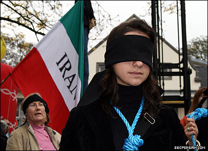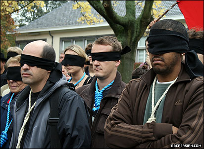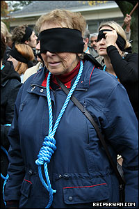 حاضران با چشم بند و طناب دار بر گردن، برای قربانیان اعدام یک دقیقه سکوت کردند.