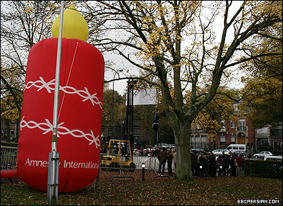 چند ده نفر از حامیان سازمان عفو بین الملل، از جمله تعدادی ایرانی دراین تجمع شرکت کردند.