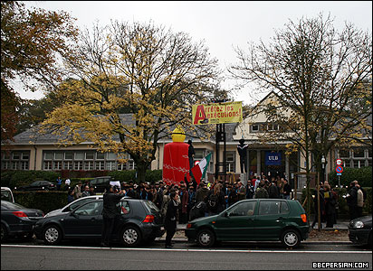 مسئولین سفارت ایران در بروکسل، واکنشی نسبت به این تجمع نشان ندادند.