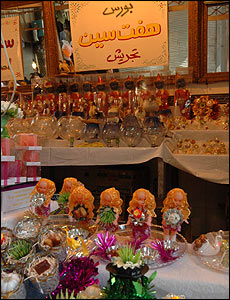 بازار تجریش - فروش هفت سین از مشترکات هر دو بازارچه در شب عید است. در گذشته ای نه چندان دور، بخش عمده سفره هفت سین توسط خود خانواده ها تهیه می شد و سبزه ها در خانه ها عمل می آمد.