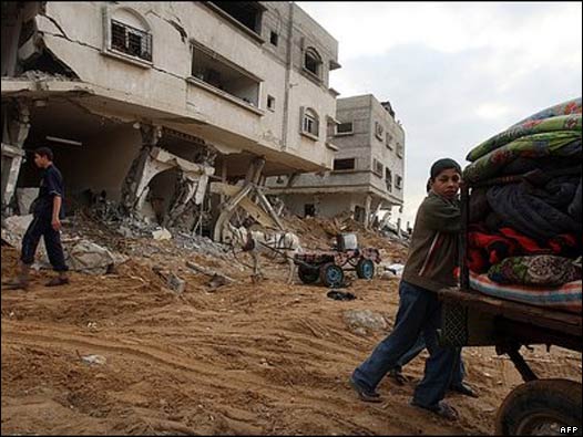 اما بعضی ها در برگشت به خانه فقط با اجساد اعضای خانواده شان در زیر آوار روبرو می شوند. به گقته فلسطینی ها دست کم هزار و سیصد تن جان خود را از دست داده اند. اما بعد از پاکسازی ساختمان ها از خرده سنگ و پاره آجر، انتظار می رود این رقم افزایش بیابد.