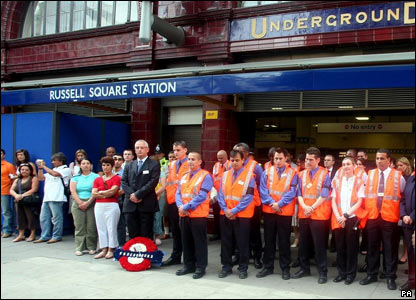 کارکنان ايستگاه "راسل اسکوئر" به احترام قربانيان حادثه سال گذشته يک دقيقه سکوت کردند. امروز ظهر به احترام قربانيان، در سراسر بريتانيا يک دقيقه سکوت اعلام شد.
