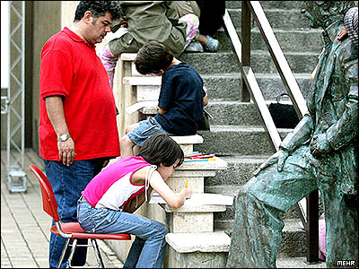 کودکان در حال نقاشی کردن در کارگاه آموزشی نقاشی جشنواره هنرهای تجسمی تهران. مراسم اختتامیه اين جشنواره شب گذشته در فرهنگسرای نیاوران برگزار شد.