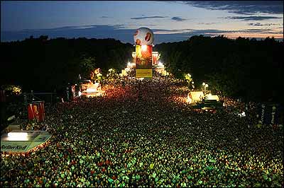 حدود يک ميليون نفر از مليتهای مختلف برای تماشای بازی فينال جام جهانی بين تيمهای ايتاليا و فرانسه در بلوار ۱۷ ژوئن برلين گرد آمده بودند. جو دوستانه ای بود و همه با هم سرود می خواندند و تيم مورد علاقه خود را تشويق می کردند. با اين حال سراسر محل بشدت توسط نيروهای امنيتی کنترل می شد. دهها خبرنگار، فيلمبردار و عکاس از رسانه های جهان در حال پوشش خبری آنچه در اين محل می گذشت بودند. اين خيابان به دروازه برندنبورگر منتهی می شود که پيش از اتحاد دو آلمان، مرز برلين شرقی و غربی بوده است.