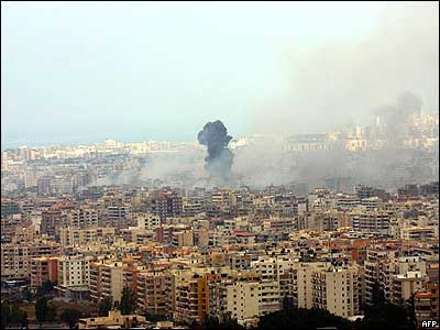 ارتش اسراييل امروز حومه جنوبی شهر بيروت را که از پايگاههای قدرت گروه حزب الله به شمار می رود، بمباران کرد. تصوير بالا نمايی از شهر بيروت پس از اين حمله است.