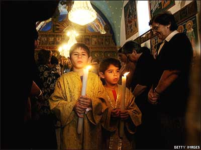 مراسم مذهبی فلسطينيان مسيحی که امروز در تنها کليسای شهر غزه برگزار شد. حدود 2500 نفر از ساکنان فلسطينی نوار غزه که بنابر آمارهای رسمی جمعيت آنها حدود يک ميليون و چهارصد هزار نفر است، مسيحی هستند.