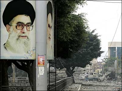 تصاويری از آيت الله خمينی و آيت الله خامنه ای در کنار مقر ويران شده حزب الله در جنوب بيروت که امروز توسط نيروهای اسراييلی بمباران شد.