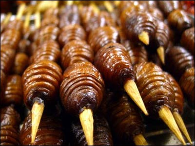 خدا می داند که چقدر غذاهای عجيب و غريب خورده ام. اما خوردن لارو کرم ابريشم هميشه برايم ترسناک بود. کرم ابريشم نيز مانند ليسک های دريايی جزو موجوداتی بودند که بيش از همه از خوردنشان وحشت داشتم. پيدا کردن جرأت برای خوردن عقرب، چشم و آلت تناسلی گاوميش در مقابل اين غذا که کمی مزه ميگو می داد چيزی به شمار نمی رود.
