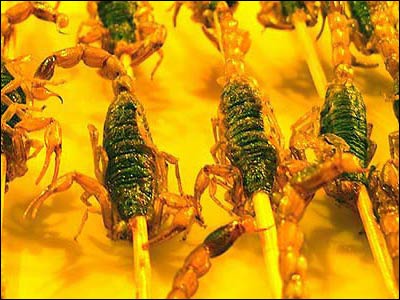 عقرب ها را زنده زنده به سيخ می کشند و آنها را به داخل روغن داغ فرو می برند که بلافاصله پخته می شوند. بيرون عقربهای سرخ شده خيلی ترد است و وسطش کمی نرم و بيشتر مزه همان روغن کهنه را می دهد که در آن سرخ شده اند.