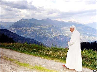 پاپ بنديکت شانزدهم، رهبر کاتوليکهای جهان در آخرين روز از تعطيلات تابستانی خود، در يک استراحتگاه کوهستانی در شمال ايتاليا قدم می زند.