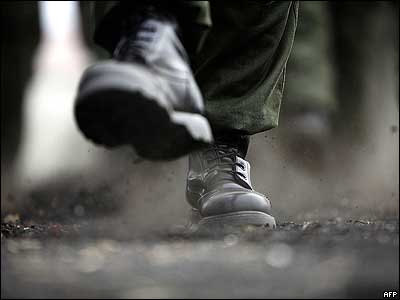 رژه سربازان ارتش جمهوری دموکراتيک کنگو در آستانه انتخابات رياست جمهوری اين کشور. هزار سرباز از نيروهای اتحاديه اروپا در کنار نيروی پاسدار صلح 17600 نفری سازمان ملل متحد، تامين امنيت اين رای گيری را بر عهده خواهند داشت.