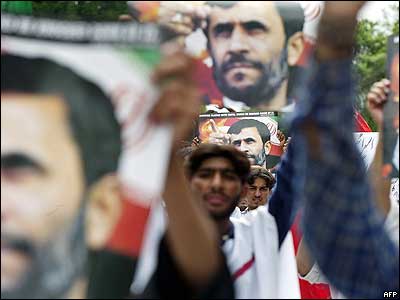 تظاهرات جمعی از شيعيان پاکستان در اعتراض به حمله اسراييل به لبنان. تظاهرکنندگان در جريان اين راهپيمايی پوسترهايی را از محمود احمدی نژاد، رييس جمهور ايران در دست داشتند.
