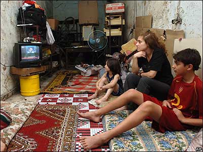 اعضای يک خانواده لبنانی که پس از گريختن از شهر بنت جبيل در جنوب لبنان، در پناهگاهی در حومه جنوبی بيروت پناه گرفته اند.