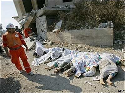 دست کم 40 غيرنظامی از جمله بيش از 20 کودک در اثر تهاجم تازه هوايی اسرائيل به روستای قانا در لبنان کشته شده اند. اين حمله تعداد زيادی نيز مجروح بر جای گذاشته است. در پی اين حمله، فواد سينيوره، نخست وزير لبنان گفته است تا زمانی که يک آتش بس فوری و بدون قيد و شرط برقرار نشود، با کسی در اين مورد مذاکره نخواهد کرد. مقام های لبنانی گفته اند کاندوليزا رايس، وزير امور خارجه آمريکا، را در بيروت نمی پذيرند. خانم رايس در حال حاضر در اسرائيل است. نخست وزير اسرائيل گفته است روستای قانا سکوی پرتاب راکت های حزب الله به سوی اسرائيل بود و اسرائيل به همه اهالی هشدار بوده بود که روستا را ترک کنند.