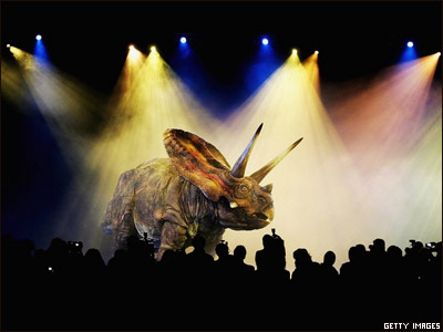 مدل متحرک دايناسور به اندازه واقعی در نمايشگاه 'همراه با دايناسورها' که در سيدنی استراليا برگزار شده است. اين نمايشگاه شامل 15 مدل دايناسور است، که حدود 15/9 ميليون دلار برای آن هزینه شده و قرار است در کشورهای ديگر دنيا نيز نمايش داده شود.