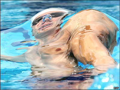 ارستيد گرگوردس شنا گر يونانی در رقابت های پنجاه متری کرال پشت مردان در مسابقات قهرمانی اروپا در بوداپست مجارستان.