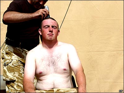 يک سرباز خارجی در ولايت هلمند افغانستان، سر همقطارش را اصلاح می کند. نيروهای ائتلاف تحت فرمان آمريکا در جنوب افغانستان، امروز رسما اعلام کردند که عمليات "يورش کوهستان" بعد از 6 هفته به پايان رسيده است.