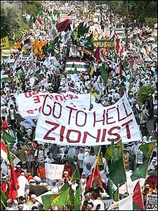 نمای ديگری از معترضان به جنگ حزب الله - اسرائيل در جاکاراتا.