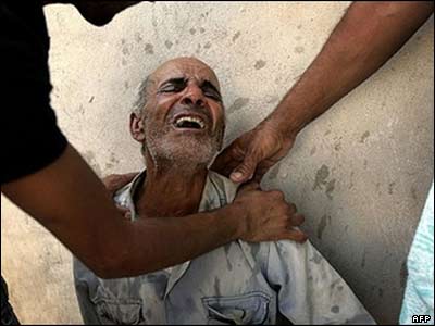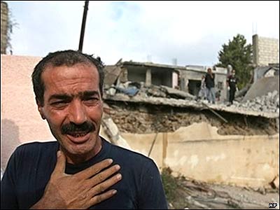 سوگواری مردی لبنانی پس از شنيدن خبر کشته شدن برادر و چهار عضو ديگر خانواده اش در پی حملات هوايی اسرائيل به جنوب لبنان.