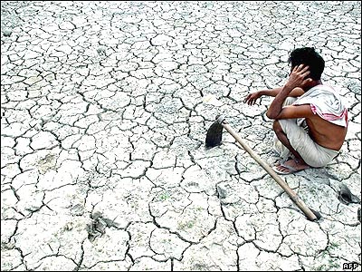 يک کشاورز هندی منتظر باران در آسام هند. اين منطقه هند که معمولا در اين موقع سال در آن باران های شديد می بارد، امسال به طور استثنايی خشک است کشاورزان منتظر باران اند تا محصول برنج شان را برداشت کنند.