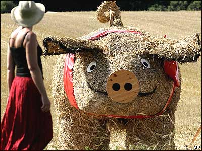 مجسمه حصيری خوک در شمال هامبورگ، آلمان. هر سال در اين کشور در اين وقت سال رقابت هايی برای ساختن مجسمه های حصيری از حيوانات توسط کشاورزان برگزار می شود.