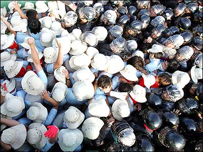 تظاهر کننده گان در سئول پايتخت کره جنوبی در نزديکی پايگاه نيروهای نظامی آمريکا درآن کشور به تظاهرات ضد آمريکايی پرداختند و با پليس ضد شورش در گير شدند.